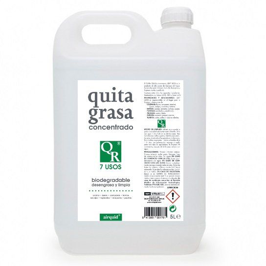 El QUITA GRASA concentrado QR 7 es un producto de alto poder de limpieza del hogar para trabajos duros de desengrase y limpieza rápida y profunda.