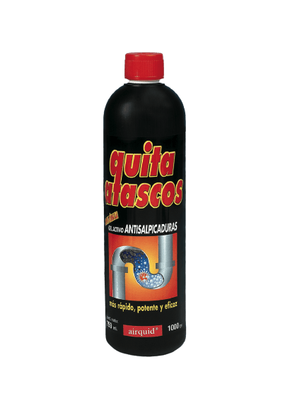 QUITA ATASCOS es un potente desatascador de acción inmediata sin necesidad de quitar el agua, disolviendo todo tipo de materia orgánica No ataca a las tuberías ni las fosas sépticas. Su exclusiva fórmula antisalpicaduras lo hace un producto seguro de manipular.