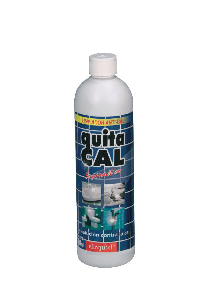 QUITA CAL es la solución desincrustante contra la cal para la limpieza diaria del baño, elimina los residuos sólidos del agua y abrillanta las superficies